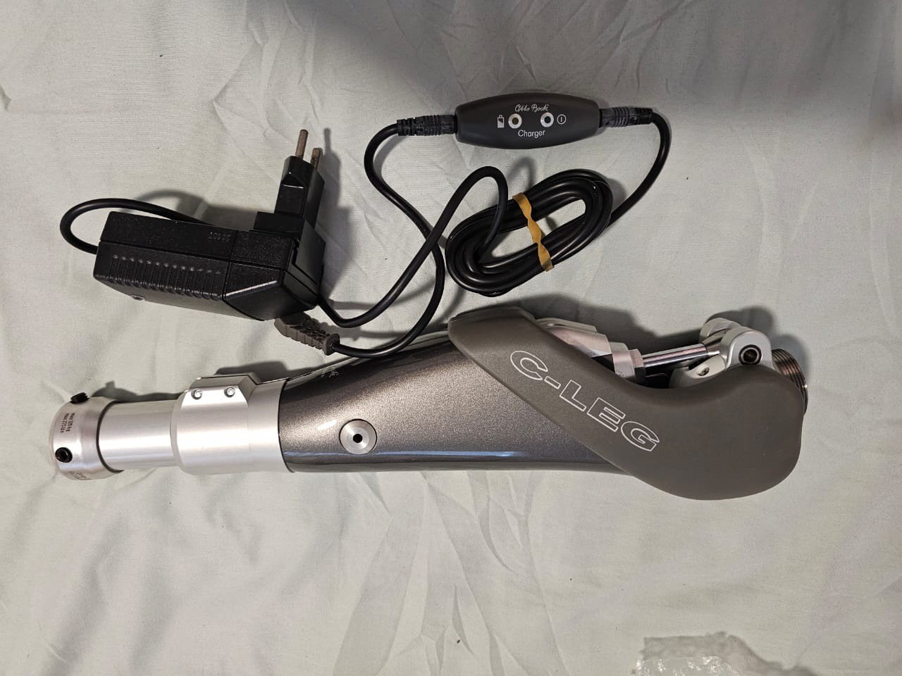 Otto Bock C Brace Prosthetic Joint Right And Left legs Sensor Walk (FOR PARTS) I do not have any way to test these so they are being sold untested for parts or repair the cord is not included, I do not have the cord Total Height from floor to top of the leg 30 3/8” Height from floor to the middle of the knee hinged 21 3/8” Foot length from toes to the heel 10 1/2” The widest length on the inside of the hamstring 5 1/2” The widest length on the inside of the calf 4”