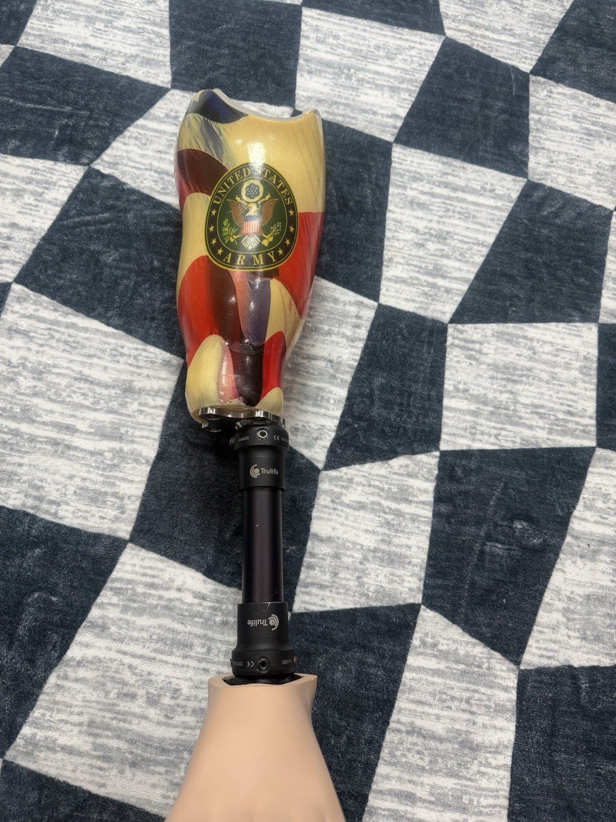 Trulife AAA225 prosthetic leg with custom US Army American flag socket